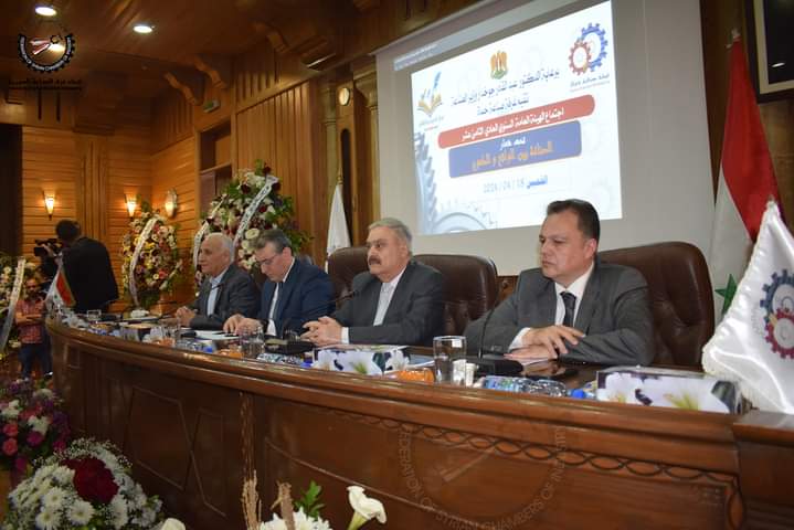 المصري خلال اجتماع هيئة غرفة صناعة حماه يؤكد ضرورة اشراك الاتحاد والغرف بالقرارات وتقديم الدعم الحكومي للقطاع الصناعي واعادة التوزيع العادل للدعم وهيكلته