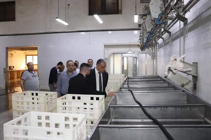 بهدف تتبع الواقع الزراعي في محافظة حلب ولقاء الفلاحين ومربي الثروة الحيوانية وزيارة عدد من المنشآت الإنتاجية وزير الزراعة المهندس محمد حسان قطنا يبدأ جولة ميدانية في ريف المحافظة الشرقي والبداية من مذبح الفروج الآلي الخاص في منطقة جبرين، حيث اطلع على واقع العمل فيه وطاقته الإنتاجية التي تبلغ 6500 طير بالساعة.