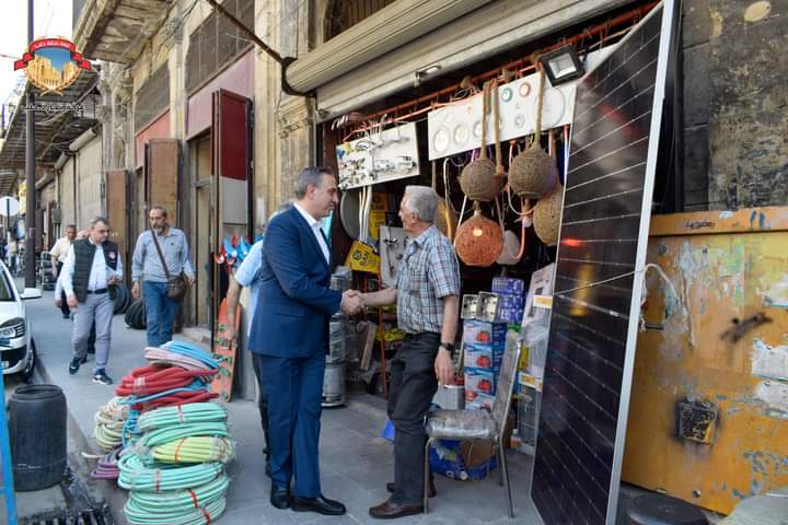 حموي خلال جولة ميدانية على أسواق (جادة الخندق وباب النصر وسوق باب انطاكيه ) يؤكد ضرورة العمل المشترك والجماعي بهدف تنشيط هذه الأسواق وإعادتها إلى سابق عهدها. .
