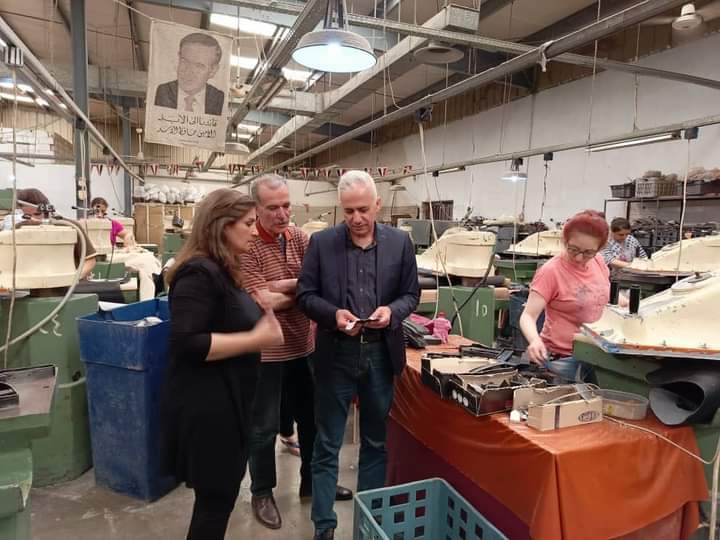 قام مدير العام الشركةالعامة لصناعةالأحذية السيد شريف الحسن وضمن إطار توجيهات السيّد وزيرالصناعةالدكتورعبدالقادرجوخدار بضرورة الحضور الميداني على العمل وتقديم كلّ ماهو أفضل .قام الحسن بعدّة زيارات إلى #معمل أحذية_السويداء.اليوم السبت . بهدف متابعة سير العمليّة الإنتاجية و توجيه الشكر إلى الأخوة العمال على جهودهم المخلصة في تقدم الإنتاج كمّاً ونوعاً ، والتأكيد على أنّ الإدارة العامّة ستقدم كل شيء في سبيل تقدم الإنتاج وسويّة المنتج بأدق التفاصيل .
