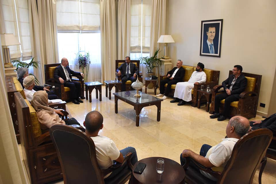 استقبل وزير السياحة المهندس محمد رامي رضوان مرتيني الوفد العربي المشارك في معرض الزهور الدولي أصحاب المشاتل الخاصة من دول العراق الشقيق وسلطنة عمان ولبنان، تناول اللقاء أهمية المشاركة في معرض الزهور وتميزه من حيث المشاركات والنباتات المعروضة والإقبال الجماهيري، والحفاوة وكرم الضيافة التي تشتهر بها سورية الدولة الحاضنة لمختلف الشعوب العربية والدول الصديقة.