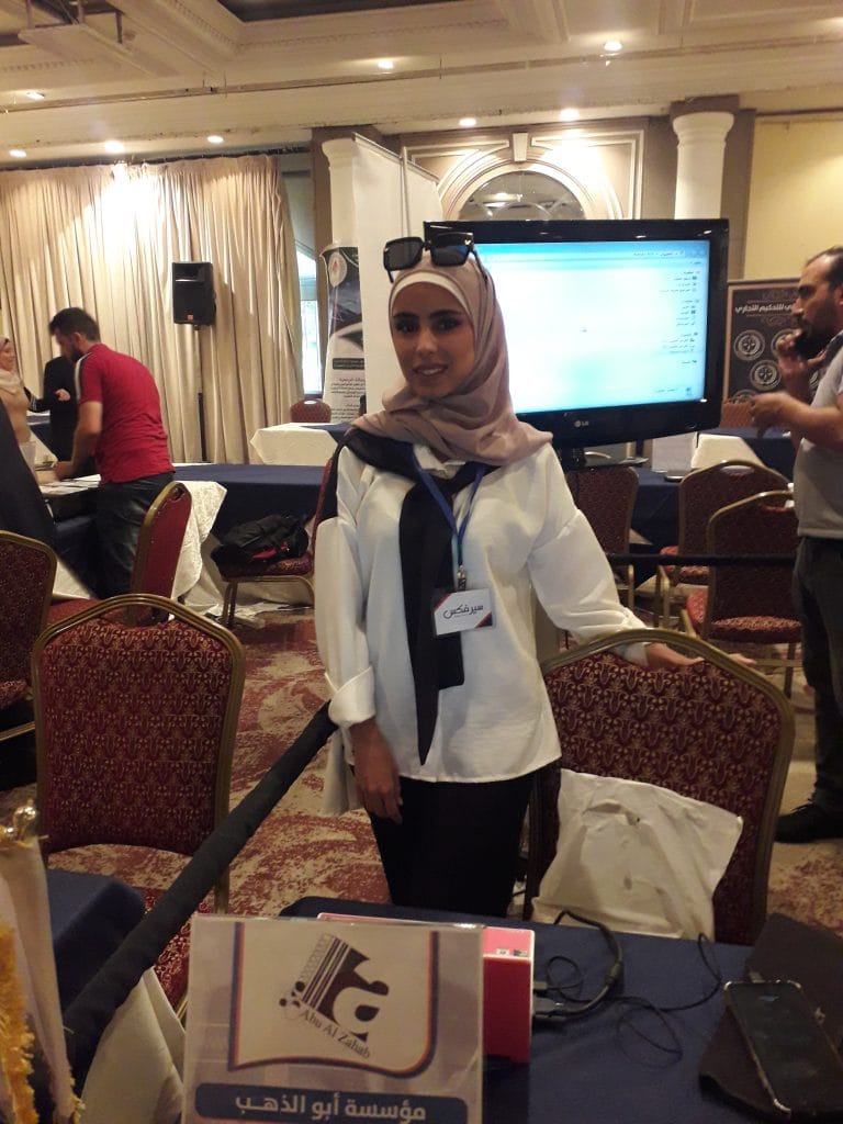 بدورها مسؤولة قسم التسويق في مؤسسة ابو الدهب راما مقاط قالت :نعمل في مجال الطباعة وقص الليزر ومواد الدعائية مؤكدة اهمية المشاركة في سيرفيكس للتعرف على احتياجات المواطنين في السوق واستقطاب زبائن اكتر ومعرفة احتياجات الشباب في هذه الايام ومعرفة فرص التعاون مع شركات اخرى.