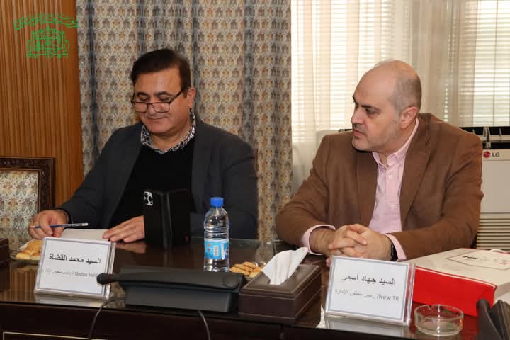 وضم الوفد الزائر كلاً من السادة: جهاد أسمر، إسماعيل مصبح الوائلي، تميم شعبان، أمجد قاسم، حسين خضور، ضياء الكواز، علاء الرنكيسي، محمد القضاه، خالد سلمون