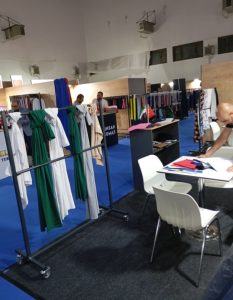 من جانبه مدير المبيعات في تاج فرح تكستيل معتز بولاتي أكد اهتمامهم الكبير بالمعرض والمشاركة فيه واستكشاف الأوضاع بالبلد والعودة للتأسيس سواء بالداخل أو الخارج وأحياء وانماء للبلد مبينا أن مجال عملهم في الأقمشة التي تصنع بواسطة الماكينات الحلقية “السوكوليه “
