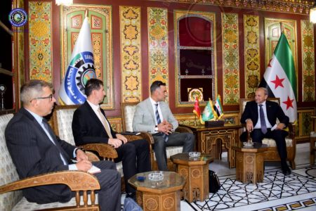 استقبل رئيس غرفة صناعة دمشق وريفها المهندس محمد أيمن المولوي، الملحق التجاري التركي الأول السيد أوغوز كيومجي، والملحق التجاري التركي الثاني السيد ألفا سيه سفان، إلى جانب مدير العلاقات العامة في الملحقية التجارية أحمد عيسى أوغلو، وبحضور عدد من أعضاء مجلس إدارة الغرفة.