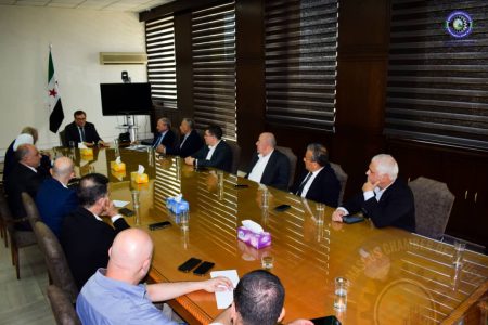 في لقاء امتاز بالشفافية والوضوح بالطرح استقبل السيد حاكم مصرف سورية المركزي الدكتور عبد القادر الحصرية، رئيس غرفة صناعة دمشق وريفها المهندس محمد أيمن المولوي وعدد من أعضاء مجلس إدارة الغرفة في مقر البنك المركزي.