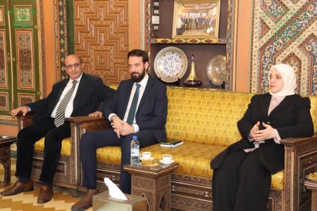 استقبل المهندس عصام الغريواتي رئيس غرفة تجارة دمشق، السيدة عائشة الدبس مديرة مديرية التنمية المحلية في محافظة دمشق، وذلك لبحث سبل تعزيز التعاون المشترك ودعم مسارات التنمية المحلية.