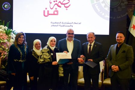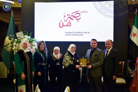 اختتمت فعاليات ملتقى “بصمة فن” الذي تنظمه لجنة سيدات الأعمال الصناعيات في غرفة صناعة دمشق وريفها برئاسة المهندسة وفاء أبو لبدة، حيث حضر حفل الختام المهندس محمد أيمن المولوي رئيس غرفة صناعة دمشق وريفها، والأستاذ أنس طرابلسي عضو مجلس ادارة الغرفة حيث تم توزيع شهادات المشاركة على السيدات المشاركات وتقديم الدروع التكريمية للشركات الراعية تقديراً لمساهمتها في إنجاح الملتقى.