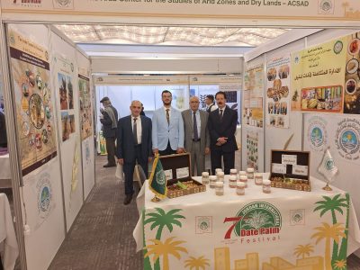 وتأتي هذه المشاركة في إطار التزام المنظمة المستمر بدعم وتنمية قطاع نخيل التمر في الدول العربية، وتعزيز التعاون الإقليمي ونقل التقانات الحديثة وتحسين الإنتاجية وتعزيز التكامل الإقليمي في مجالات البحث العلمي، وتبادل الخبرات، بما يسهم في تحقيق الأمن الغذائي والتنمية الزراعية المستدامة في البيئات الجافة وشبه الجافة، وتضمنت إقامة جناح خاص بمنظمة أكساد في المعرض المصاحب للمهرجان، استعرضت من خلاله أبرز البرامج والمشاريع التي تنفذها المنظمة لتطوير زراعة النخيل في المنطقة العربية، بما في ذلك مشاريع بحوث وتطوير النخيل، وتقييم السلالات البذرية، وتحسين عمليات خدمة النخيل، وتحديث الخرائط البيئية الملائمة لزراعته، إضافة إلى برامج بناء القدرات وتدريب الكوادر الفنية الوطنية.