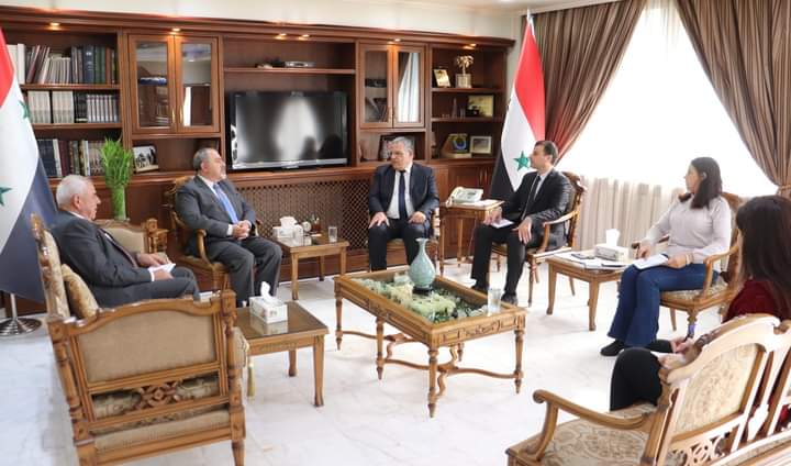 وزير الزراعة يبحث مع الممثل الجديد لمنظمة الفاو بدمشق علاقات التعاون وتحديد الأولويات.. قطنا: تنفيذ برامج التنمية المستدامة والتعافي المبكر والتأسيس لأصول إنتاجية