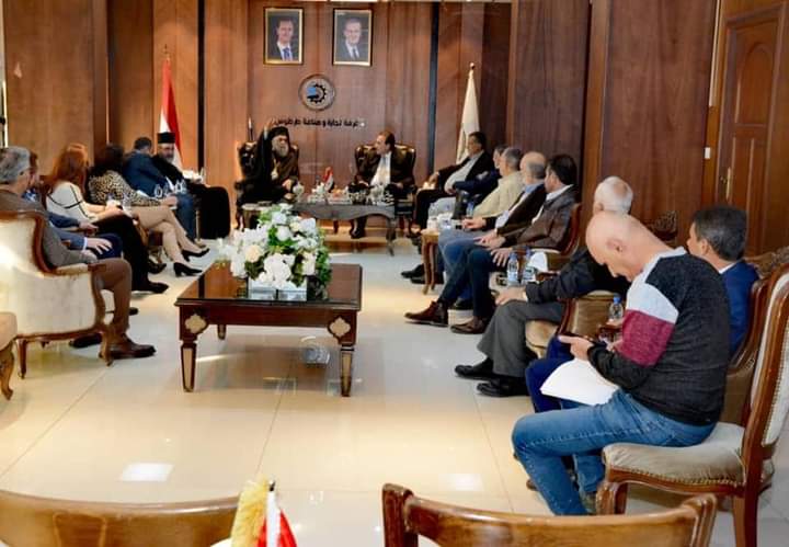 استقبل السيد مازن انيس حماد نائب رئيس اتحاد غرف التجاره السوريه رئيس غرفة تجارة وصناعة طرطوس اليوم سيادة المتروبوليت باسيليوس منصور راعي أبرشية عكار وتوابعها للروم الارثوزكس في مقر الغرفه